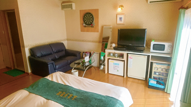 お部屋全体が落ち着いた薄いグリーンです。ダーツがあります。