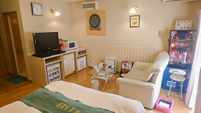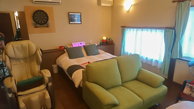 お部屋にはダーツとマッサージチェアがあり、清潔感あふれるお部屋です。