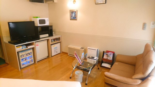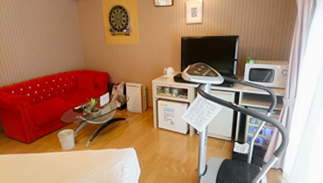 清潔感あふれるお部屋です。イスに座って揺らすだけでまるで乗馬をしているような気分を体感できるロデオマシーンがあります。