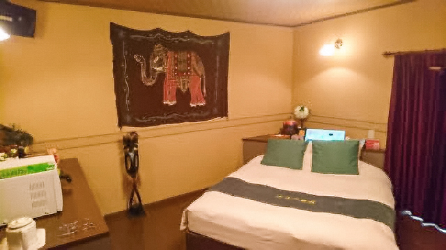 アジアンチックな空間のお部屋です。お庭付の部屋で開放感と贅沢気分が味わえます。唯一鯉に餌をあげることの出来るお部屋です。(餌はお部屋にご用意しております)