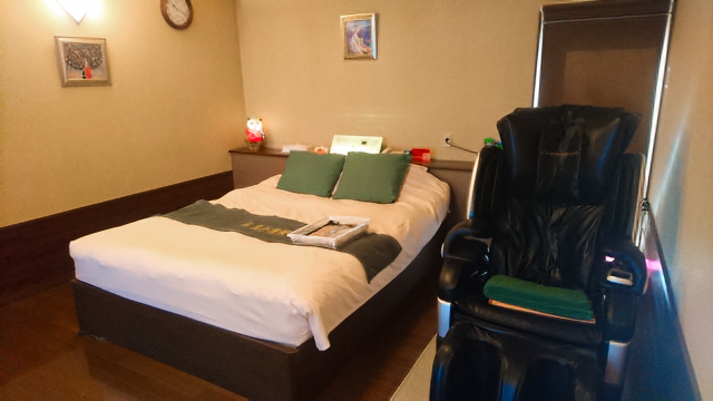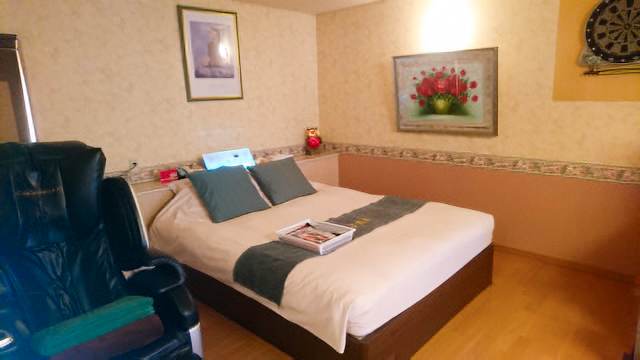 清潔感あふれるお部屋です。Bluetoothで耳元から音楽を流せるマッサージチェアー、ダーツがあります。